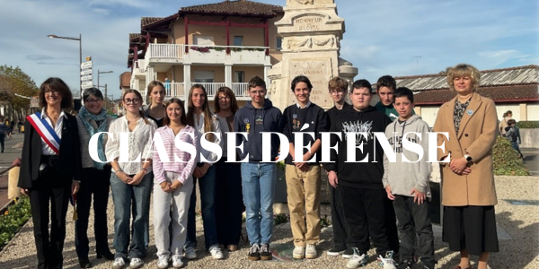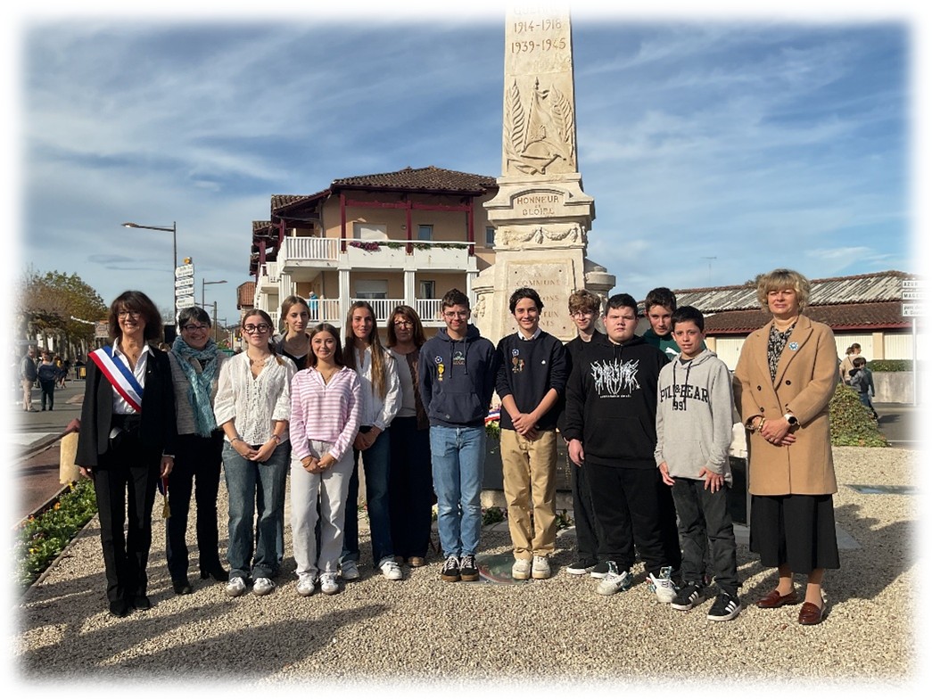 Des élèves de la classe Défense se sont retrouvés autour du Monuments aux morts de Soustons pour la cérémonie du 11 novembre honorant tous les morts pour la Patrie depuis 1918.